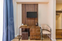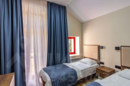 Уютный номер с окнами на курортную территорию. Две односпальных кровати, письменный стол, стул и прикроватная тумба. Просторная ванная комната с умывальником, косметикой для душа и ванной. В номере имеется телевизор, посуда, тапочки. По требованию предоставляются фен и чайник. В каждом номере из под крана течет структурированная горная вода из лечебного источника.