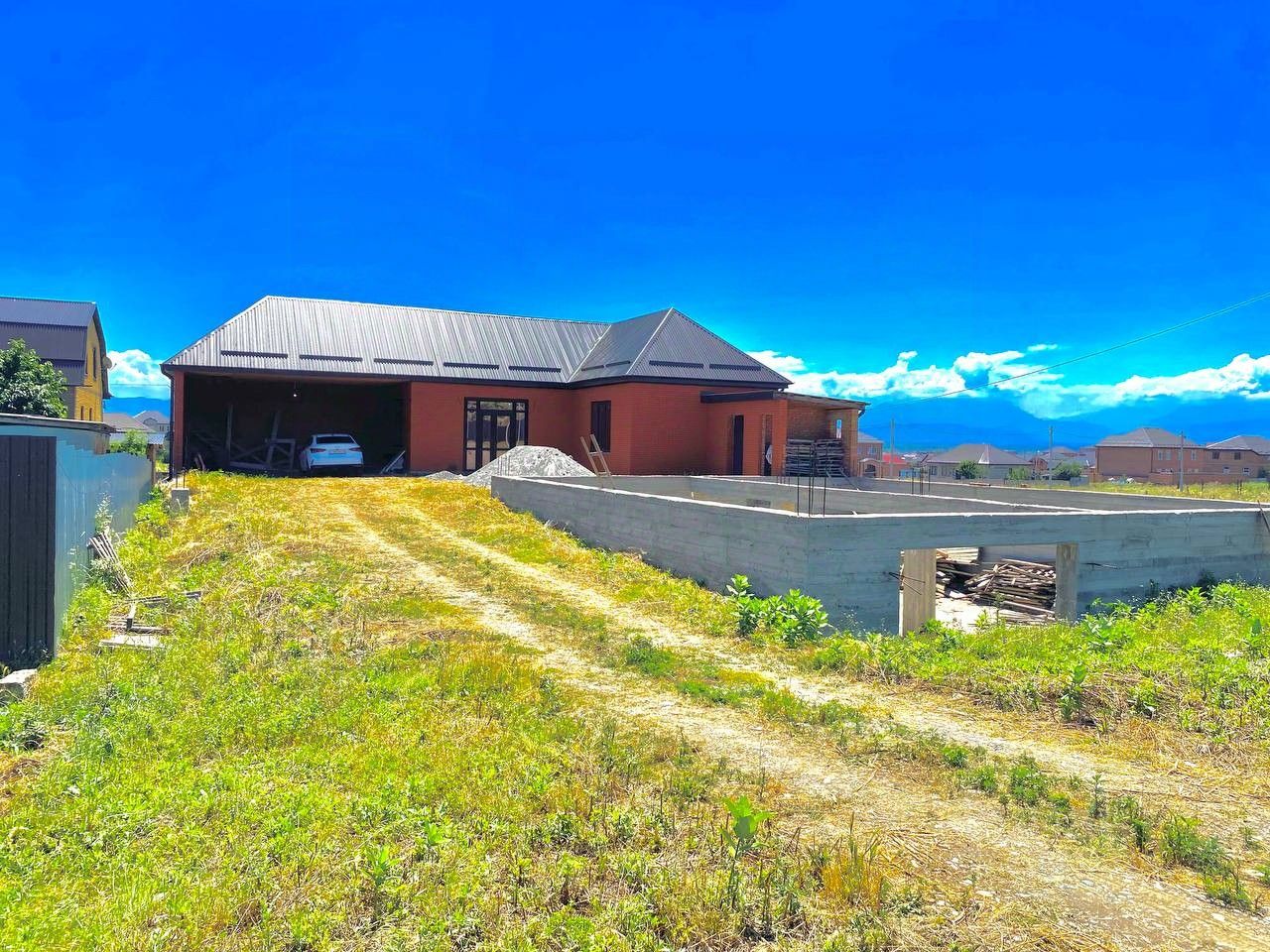 Продается земельный участок с недостроенным домом.